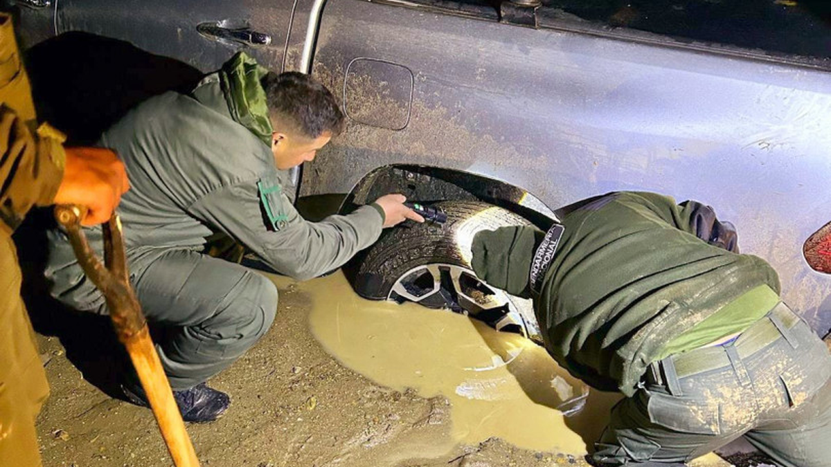 Inmediatamente, se activó un operativo cerrojo con apoyo del personal de la Sección “Abra Pampa”, lo que permitió ubicar el rodado en un camino secundario conocido como “Cuesta del Toquero”, próximo a un paso fronterizo no habilitado con Bolivia. La camioneta quedó atascada en un alambrado, lo que obligó a su conductor a abandonarla y continuar su escape a pie.