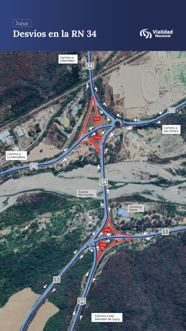 Estado de las Rutas - Jujuy RN34 ALT - Acceso Norte a San Pedro Desvío de transito temporario - con extrema precaución