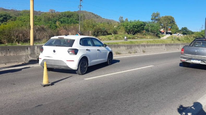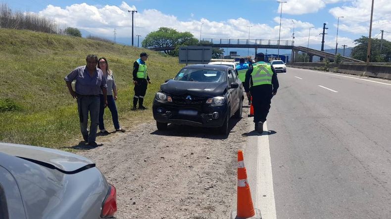 El hecho ocurrió a la altura ingreso barrio Progreso y el chofer del auto indicó que una camioneta que circulaba por delante freno de golpe, para evitar colisionarlo freno de forma brusca y perdió la estabilidad de su rodado impactando con la parte lateral contra el separador de la ruta produciendo el vuelco.