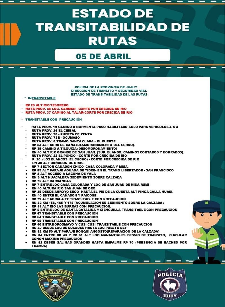 Cómo están las rutas en Jujuy hoy 5 de abril