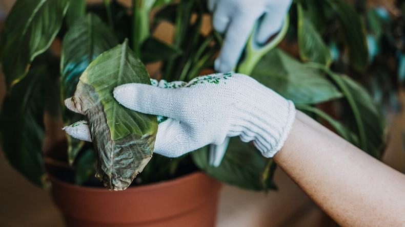 Podar las hojas secas para que vuelva a brotar