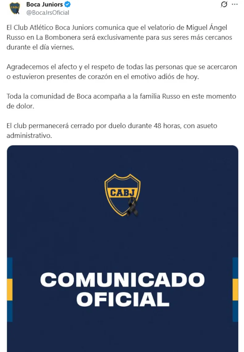 Tras un velorio multitudinario que comenzó en la mañana del jueves, los restos de Miguel Ángel Russo fueron trasladados este viernes desde la Bombonera hacia su cremación en el cementerio de Pilar. Alrededor de las 10:15, el coche fúnebre que trasladaba al exdirector técnico de Boca Juniors salió del estadio de Brandsen 805.