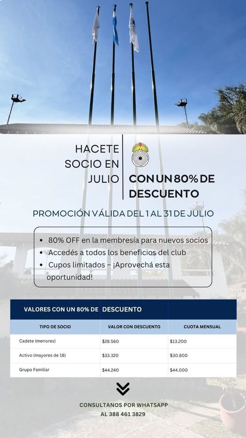 En el mes aniversario, la institución lanzó una promoción especial para quienes deseen asociarse: “Todo el mes de julio, que es el mes aniversario del club, tenemos un 80% de descuento. Solamente pagan el 20%. Así que bueno, los esperamos esto que queda de julio. Que aprovechen, porque después es un poquito más difícil,” invitó el presidente.