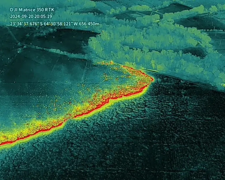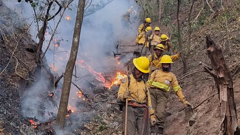 Tras detectar el incendio “El Salado” mediante monitoreo satelital, los equipos especializados desplegaron cuadrillas para establecer brechas cortafuego defensivas, lo que ayudó a contener y frenar el avance del fuego.