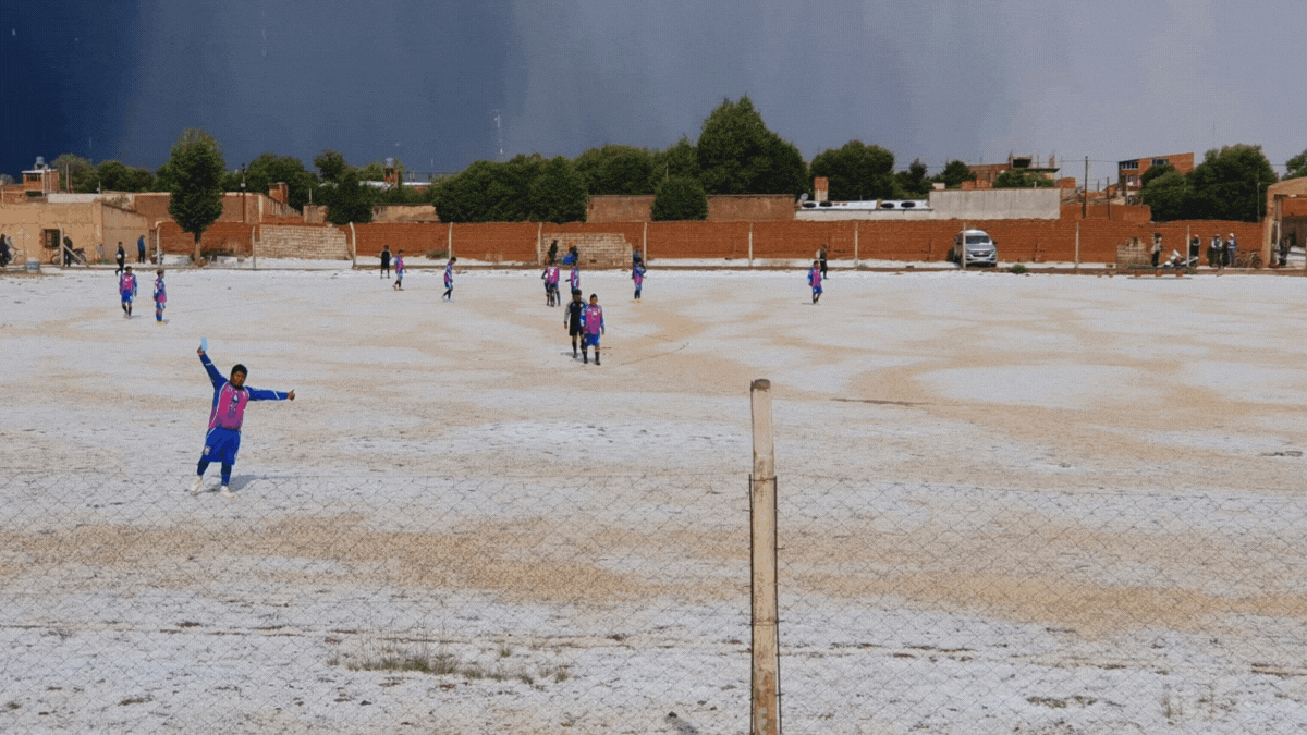 Abra Pampa vivió un fuerte temporal de granizo durante la tarde de este jueves, dejando calles completamente blancas, canchas de fútbol y otros sectores cubiertos por una gruesa capa de hielo. Las imágenes muestran la magnitud de la caída, que generó inconvenientes en el tránsito y obligó a suspender actividades al aire libre.