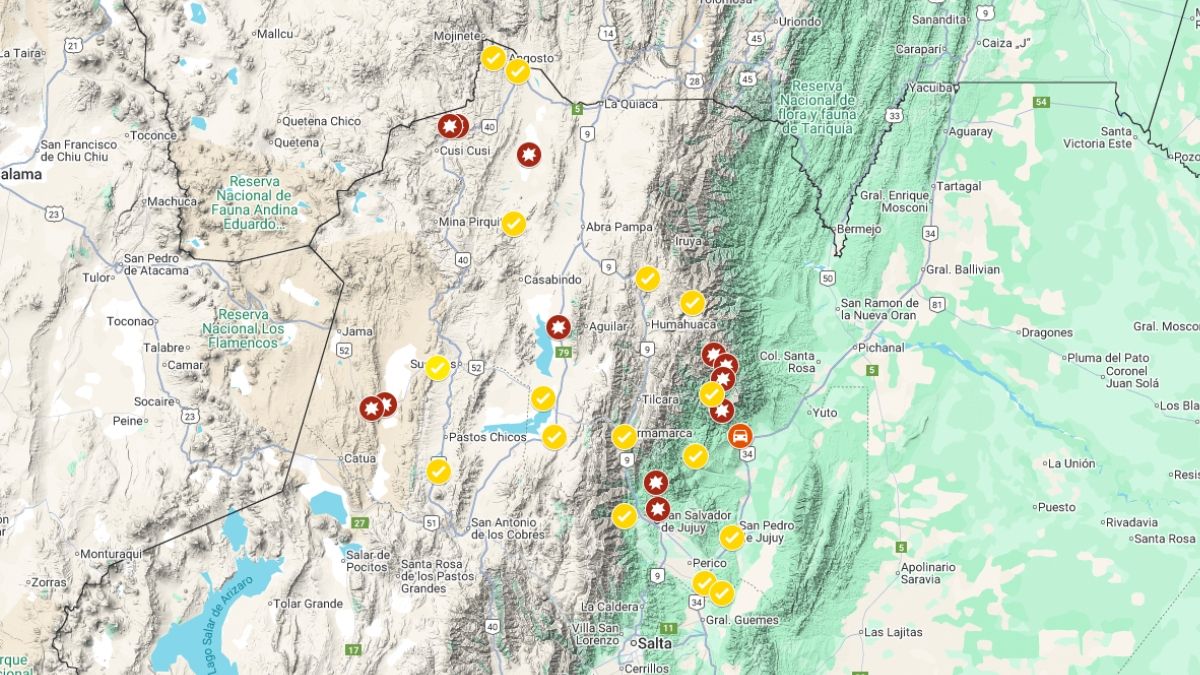 El mapa del estado de las rutas en Jujuy: hay más de 10 cortes totales