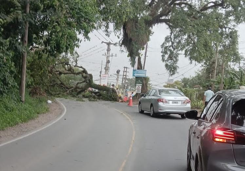 En Alto La Viña, a la altura del centro cultural Lola Mora tuvieron que cortar el paso vehicular debido a la caída de un árbol sobre la Ruta 56.