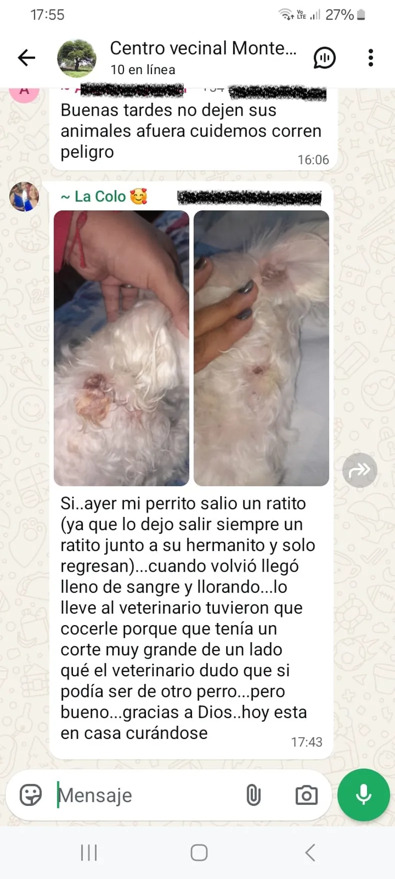 Entre los hechos denunciados, Oliveira recordó el caso de Taty, una perra que fue gravemente atacada. “Fue despellejada y lamentablemente murió”, relató. En las últimas horas, además, apareció otro caniche con lesiones similares, lo que refuerza la hipótesis de que se trata de ataques reiterados en un mismo sector del barrio.