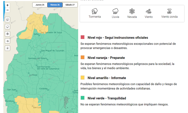 Jujuy bajo alerta amarilla para este viernes 26 de diciembre