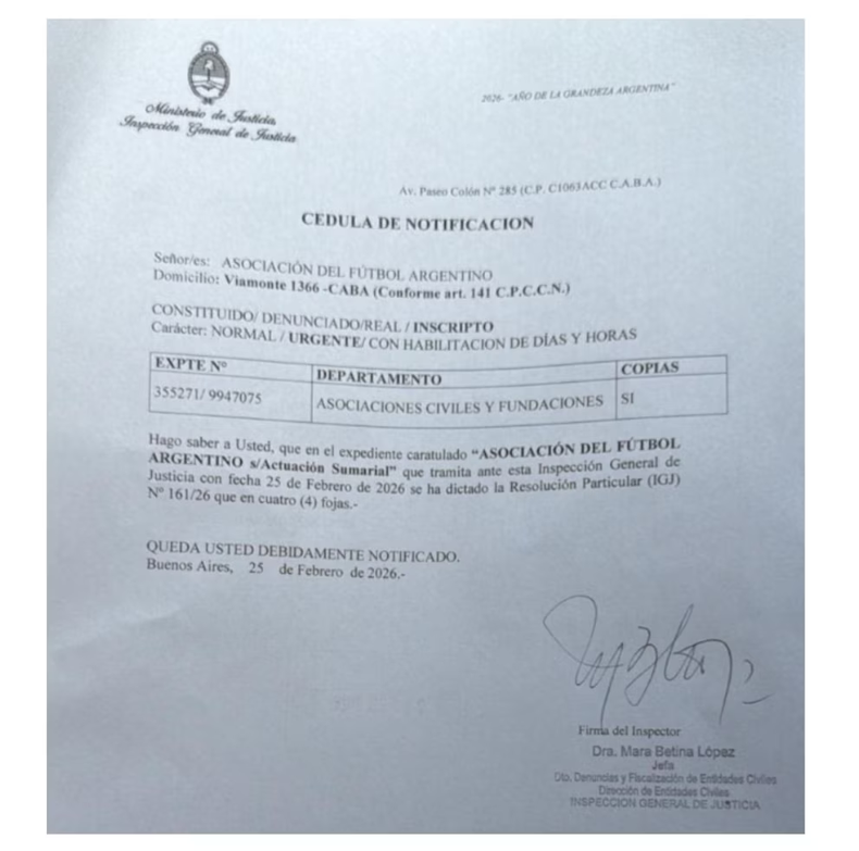 Además, la IGJ remarcó la falta de información sobre la llamada “Universidad de la AFA”, una estructura que no figura registrada oficialmente. Para el organismo de control, la ausencia de datos sobre su funcionamiento, financiamiento y marco legal refuerza la necesidad de un control externo sobre la entidad madre del fútbol argentino.