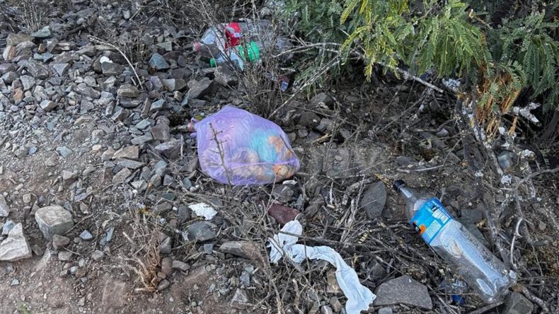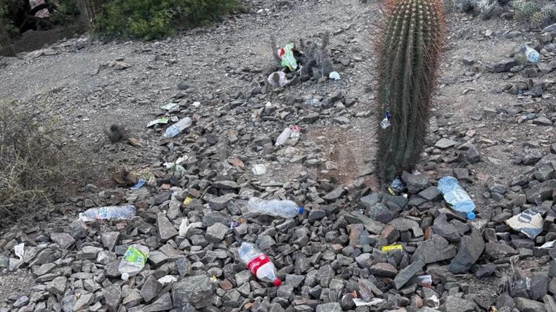 Durante la subida, los corredores observaron distintos focos de basura. Predominan botellas de plástico y envoltorios livianos, materiales que suelen quedar tras actividades al aire libre.
