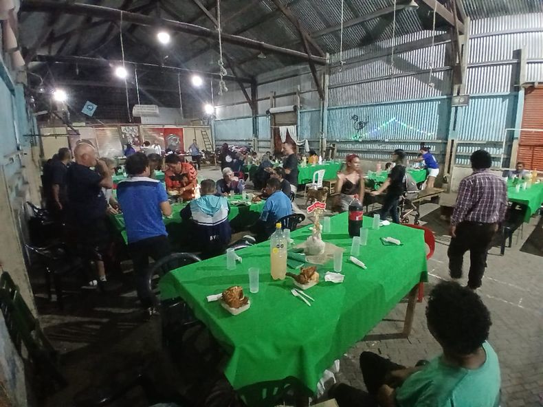 Voluntarios de distintos puntos de la provincia se unificaron en esta iniciativa, que buscó llevar no solo comida, sino “una cena de amor” a quienes más lo necesitan. Platos calientes, postres y bebidas llenaron las mesas bajo las estrellas, creando un ambiente familiar pese a las adversidades.