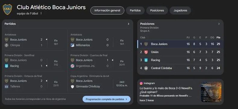 La razón de fondo está relacionada con la procedencia de la información. El buscador no genera de manera propia los datos deportivos que exhibe, sino que los obtiene a través de compañías externas dedicadas a recopilar calendarios, resultados y acciones en tiempo real. En el caso del fútbol argentino, el vínculo con ese proveedor de estadísticas se encuentra, por ahora, interrumpido.