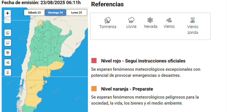 Domingo 24 de agosto: persistirá el alerta, aunque se espera que hacia la noche el viento pierda intensidad. Aun así, seguirán registrándose ráfagas considerables en sectores de montaña y caminos de altura.