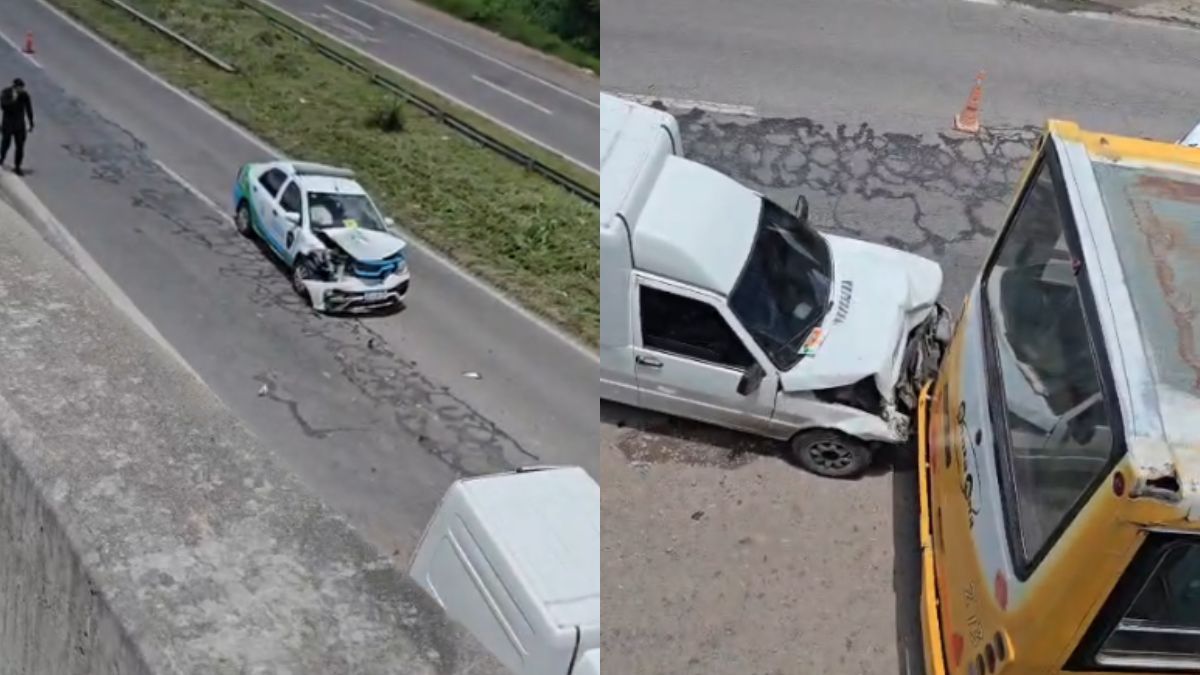 Según la información disponible, el choque tuvo como protagonistas a un colectivo de transporte de pasajeros, un vehículo utilitario y un auto perteneciente a Seguridad Vial. Por el momento, no trascendió información oficial sobre personas heridas ni sobre las causas que derivaron en el impacto.