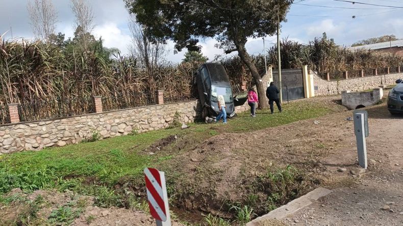 Al llegar la mañana, el auto ya se encontraba en esa posición. Según las primeras informaciones no habría personas heridas.