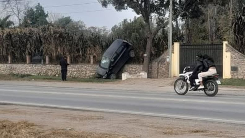 En redes sociales, las fotos del auto apoyado contra la pared causaron sorpresa y una ola de teorías. Algunos usuarios propusieron que el conductor intentó una maniobra extrema y falló.