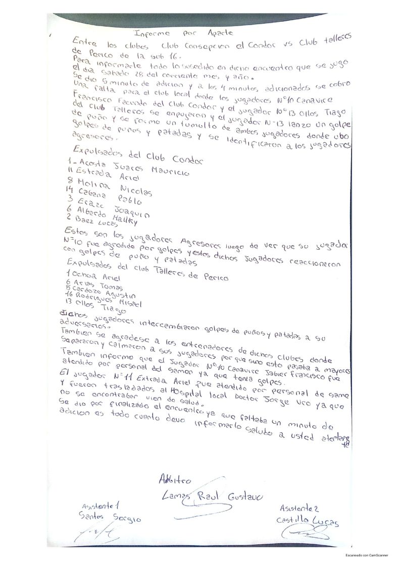 informe arbitro – partido sub 16